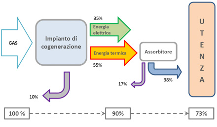Se l’acqua calda prodotta viene utilizzata per alimentare un chiller ad assorbimento per la produzione di acqua refrigerata, si parla allora di trigenerazione.